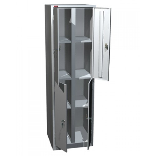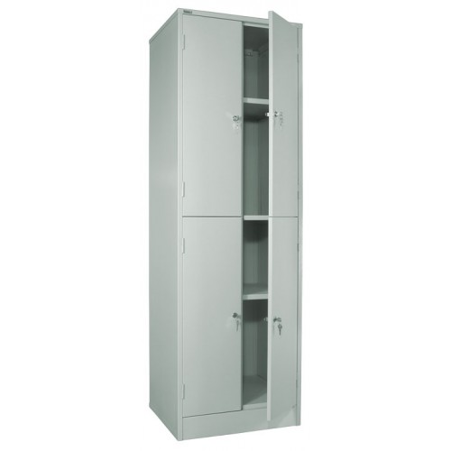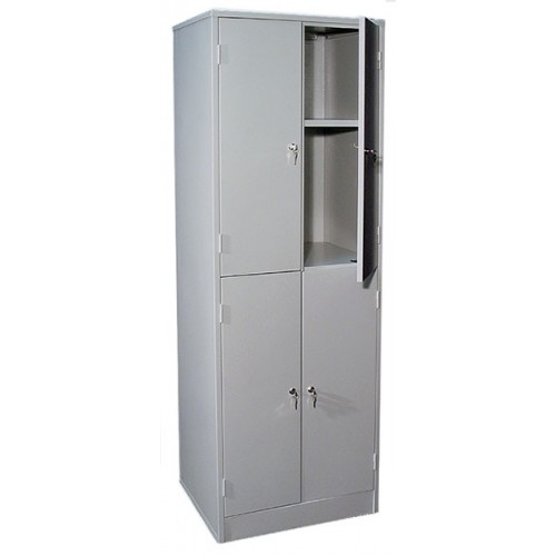 Шкаф металлический разборной двухсекционный, с 4-мя отделениями. Предназначен для хранения архивов, офисной и бухгалтерской документации. В каждом отделении одна полка. Двери архивного шкафа ШРМ - 24.0 оснащены индивидуальным врезным замком. Покрытие - полимерное порошковое серого цвета (RAL 7035).