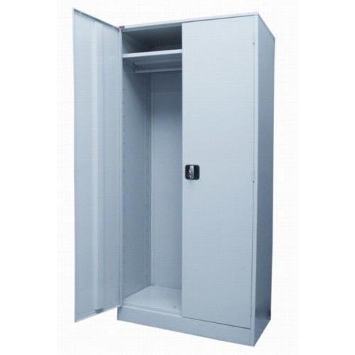 Шкаф металлический разборной односекционный, предназначен для хранения сменной одежды в офисах. В отделении находятся полка для головных уборов и перекладина для вешалки. Отделение шкафа оснащено замком повышенной секретности (ригельная система). Покрытие - полимерное порошковое серого цвета (RAL 7035). По внешнему виду идентичен архивному шкафу ШАМ - 11.